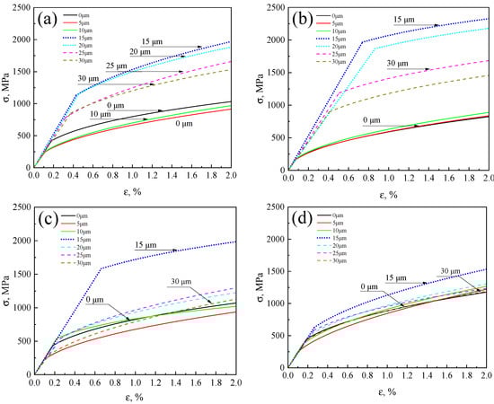 Figure 11. Local stress–strain curves: (a) R, (b) FC, (c) AC, and (d) WC samples.