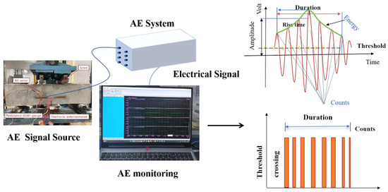 AE technology collects the dynamic energy waves generated by a material to assess its status when it is damaged and predict its rupture degree in advance. The parameters used for the evaluation are called the acoustic emission parameters. The destruction process of UHPSC was analyzed using AE parameters to obtain the destruction characteristics of UHPSC under different replacement rates of recycled tire steel fibers.