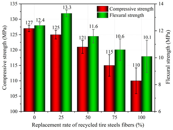 b-value during the compression tests of UHPSC with different replacement rates of recycled tire steel fibers. After incorporating recycled tire steel fibers, the