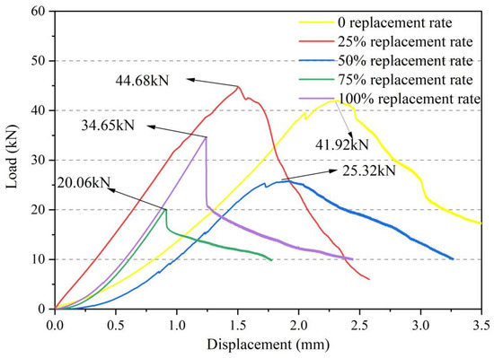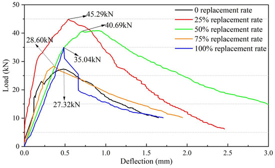 Therefore, a 25% replacement rate is considered optimal for improving the flexural strength of UHPSC specimens, as higher rates may lead to increased damage and accelerated crack formation.