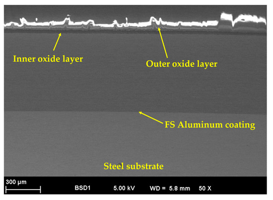 - The FS Al-based coatings presented good adhesion to the steel substrate, showing a clean interface with no gaps, cracks, or pores in the SEM cross-section micrographs.