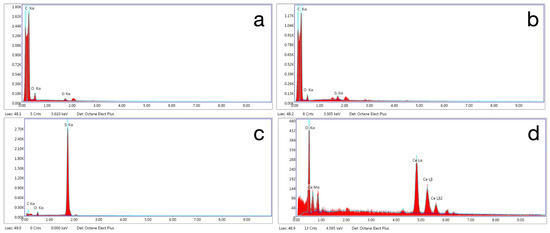 Representative (n = 1) EDS spectrum of abrasive particles from different polishers: ASAP pre-polish (a), ASAP high-shine (b), rubber acrylic polisher (c), and diamond abrasive paste (d).