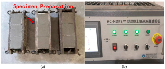 Freeze–thaw cycling test: (a) specimen molding; and (b) fully automated rapid freeze–thaw cycling.