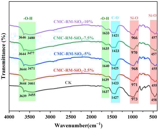 | CMC-RM-SiO2 | 2.5 | RM-2.5 | 450 | 225 | 1316.25 | 33.75 |