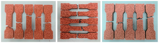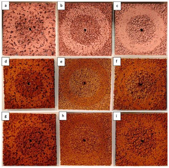 Figure 6) types exhibited a uniform and continuous surface morphology with no visible structural defects, delaminations, or cracks. The specimens were visually homogeneous and presented no evidence of curing-related anomalies such as blistering, void formation, or edge detachment. The surface quality was consistent across each panel, which confirms the reproducibility of the preparation process and the compatibility of the polyurethane binder with the rubber granulate systems used. Minor surface irregularities in the form of small, localized inclusions or micro-residue traces were observed in some samples, likely originating from the manual processing phase, including molding, demolding, or surface finishing. These impurities, however, were superficial and did not affect the integrity or continuity of the coating.