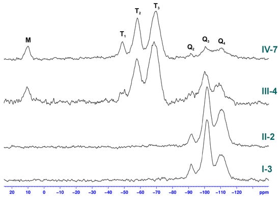3.2.3. Studies on the Chemical Structure of Hybrid Silica with Solid State NMR Spectroscopy