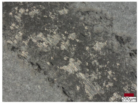 The wear process is influenced by the abrasive mechanism, mainly the micro-cutting sub-mechanism. Figure 11 clearly shows the scratches in the wear scar of sample no. 5.