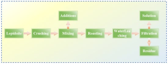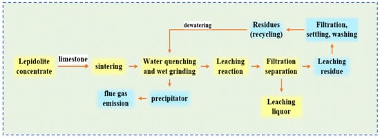 Flow chart of sulfation–roasting–leaching process of lepidolite ore [37].