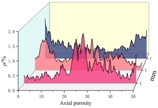 Z-Direction (Build Direction): Porosity exhibits an initial decrease followed by an increase, peaking at 1.545% (0–1 mm position). This profile reveals the size-specific concentration of defects (100–500).