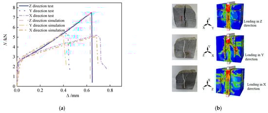 However, slight deviations were noted, particularly in the Z-direction splitting simulations, where simulated cracks exhibited more idealized propagation paths compared to the somewhat irregular stepwise or branching cracks observed experimentally. This mismatch can be attributed to local heterogeneities, pore-induced stress concentrations, or interface geometry complexity that is not fully captured by the simplified interface modeling in the FEM environment.