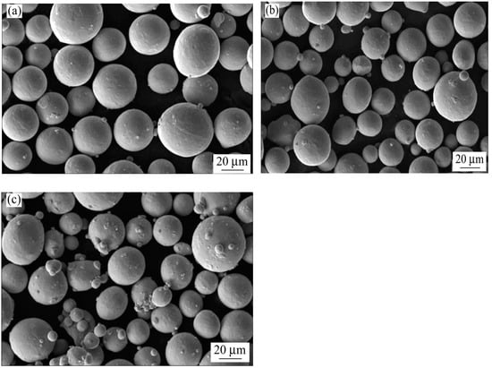 SEM morphologies of TC4 powders prepared at different gas pressures: (a) 3.5 MPa, (b) 6.0 MPa, (c) 7.0 MPa. Reprinted from Ref. [49].