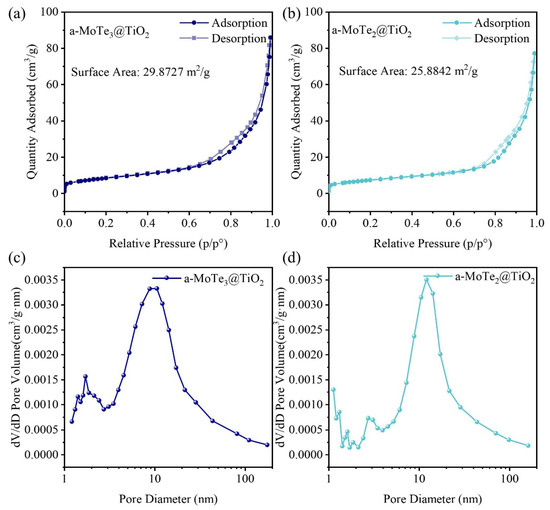 3.3. Specific Surface and Pore Size Analysis of MoTex@TiO2