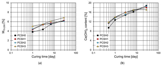 Content of PCSH specimens: (a) M70-200; (b) Ca(OH)2.