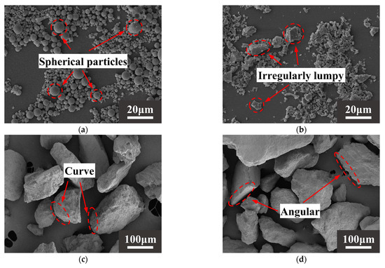 SEM images of (a) HCFA, (b) GGBS, (c) DS, (d) RS.