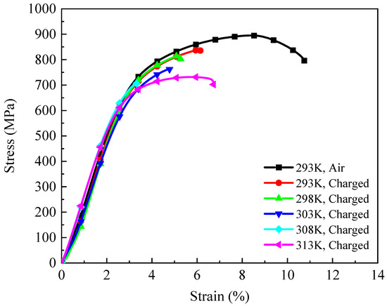 The stress–strain curves of 4130X steel at various hydrogen-charging temperatures.