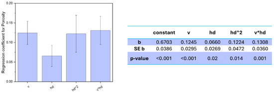 The regression coefficients of the model for porosity response are depicted in Figure 7.