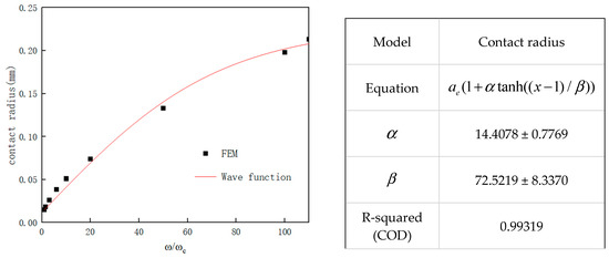 The parameters and fitting equations of the wavy asperity were imported into MATLAB 2022 for nonlinear fitting, and the relevant data and curves of the contact radius, contact area, and contact load were obtained, as shown in Figure 6: