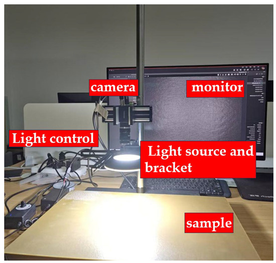 In the present study, all images processed by the algorithm were acquired using the image acquisition system illustrated in Figure 2. This system is primarily composed of a Hikrobot MV-CU200-20GM monochrome camera, a Huakang Technology ring light source (model R120-72-23), and an 8 mm focal length.