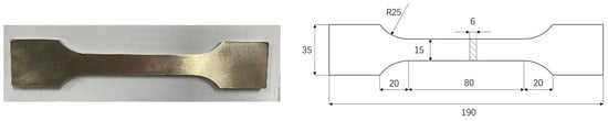 The test utilized ZCuAl8Mn13Fe3Ni2 nickel–aluminum bronze. The dimension of the fatigue test specimens is shown in Figure 11.