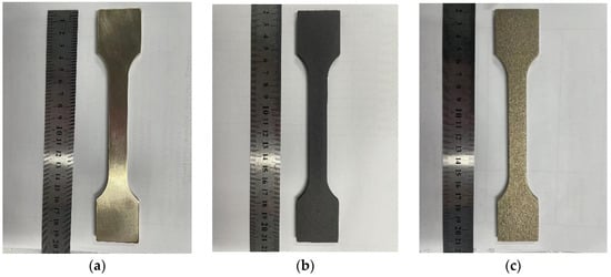 15d experimental group: nickel–aluminum bronze specimens before corrosion (a), after corrosion (b), and post-corrosion product removal (c).