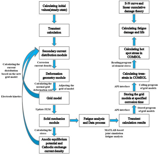 The workflow and methodology for the aforementioned corrosion–fatigue simulation analysis are shown in Figure 19: