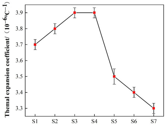 Coefficient of thermal expansion of samples S1~S7 at 600 °C.