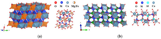 Cell structure of diopside and anorthite. (a) diopside; (b) anorthite.