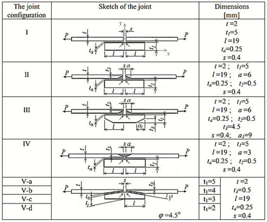 - Akpinar, S.; Hacısalihoglu, İ.; Çalık, A. The effect of geometry on joint strength in adhesively bonded joints with the same adhesive area. Mech. Adv. Mater. Struct. 2024, 31, 2635–2647. [Google Scholar] [CrossRef]