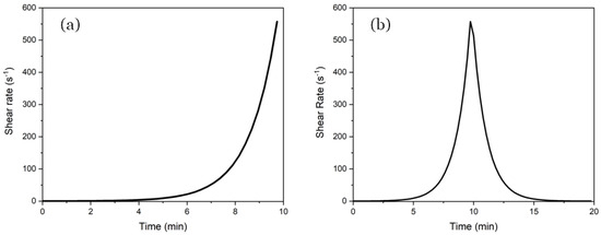(a) Logarithmic shear-rate ramp; (b) logarithmic up and down thixotropy model.
