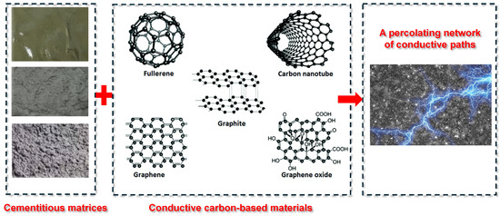 Schematic illustration of conductive network formation in cement-based composites using carbon-based materials modified based on [85].