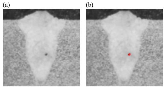 The weld pore defect is a typical defect in laser welding of aluminum alloy. Based on the preprocessed image, the binary processing is carried out according to the gray level range of the pore region as follows [22]: