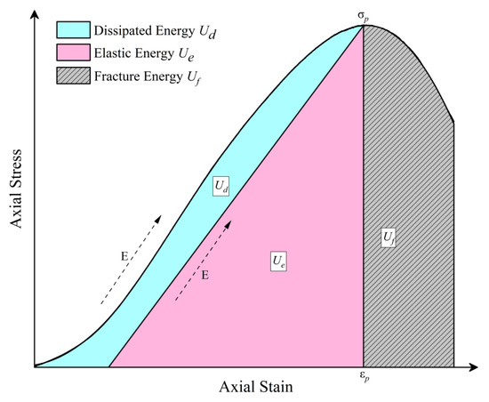 where represents the total energy absorbed by the specimen during loading, interpreted as the maximum energy stored before failure. E denotes the elastic modulus, σp is the peak stress, and εp is the peak strain.