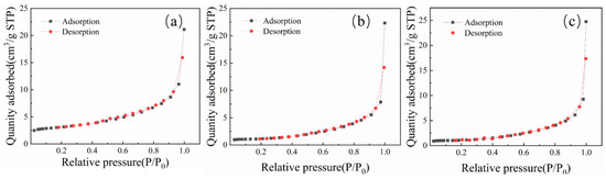 BET test results of three types of char: (a) HY1, (b)YQ1, and (c) CW1.