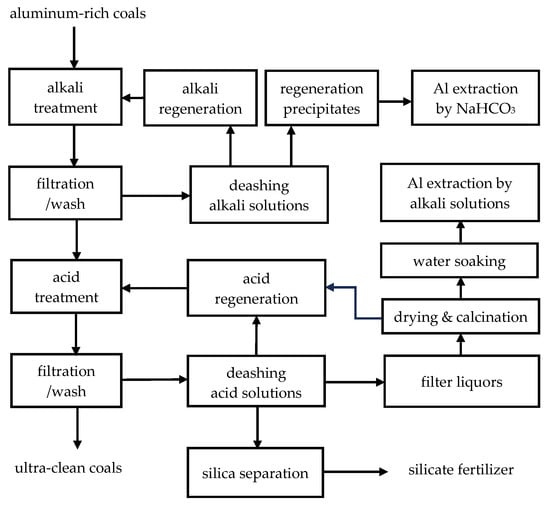 - Zhao, L. Alumina and silica extraction and byproduct development directly from chemical deashing of coals. Minerals 2022, 12, 179. [Google Scholar] [CrossRef]