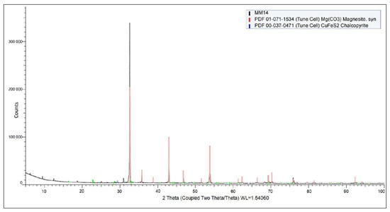 Figure 5 shows the XRD diffraction pattern of the input sample. Magnesite was confirmed as the predominant mineral phase in the sample.