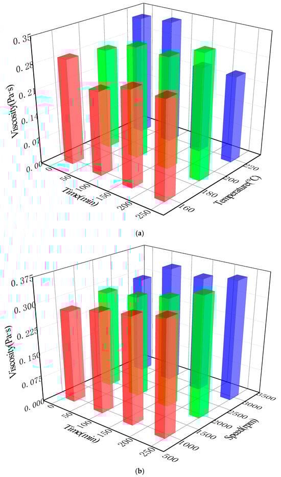 Influence of different process parameters on viscosity of activated rubber asphalt: (a) preparation temperature and (b) stirring rate.