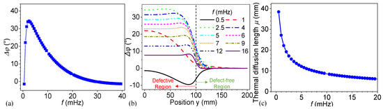 - The excitation frequency plays a pivotal role in determining defect visibility and boundary clarity in large-area thermal wave imaging. Lower frequencies are advantageous for detecting deeper defects due to longer thermal diffusion lengths, whereas higher frequencies enhance lateral resolution and boundary localization by restricting lateral heat diffusion. Frequencies below the optimal excitation frequency may result in increased detection error, while frequencies slightly above the optimal value offer a balance between phase contrast and lateral boundary resolution.