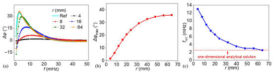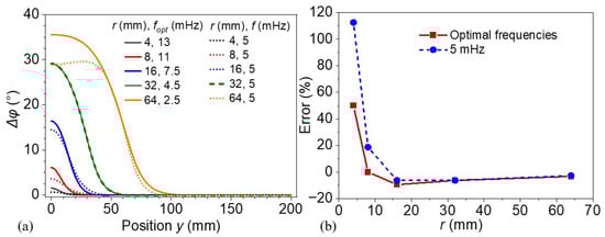 - Both the size and depth of a defect significantly influence the selection of the optimal excitation frequency and the accuracy of defect detection. In contrast, the phase difference is only marginally affected by defect thickness. Shallower defects tend to produce smaller phase differences, making them more difficult to detect. Detecting defects with small lateral dimensions presents a challenge due to reduced phase contrast and spatial resolution. Notably, the geometric ratio between the defect’s radius and depth emerges as a key parameter governing detection performance. The optimal excitation frequency increases as the radius-to-depth ratio decreases, with a ratio of approximately 2 identified as a potential threshold for the reliable detection of lateral defect boundaries. In this way, the study demonstrates that lock-in thermography has limited detection capability for defects with a relatively small radius-to-depth ratio.