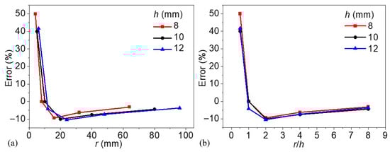 | Radius-to-depth ratio r/h | 8 | 4 | 4, 8, 16, 32, 64 |