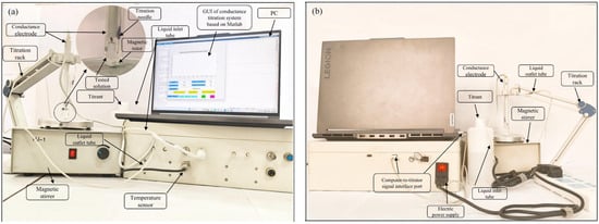 - Colvin, D.W.; Propst, R.C. A recording conductometric titrator. Anal. Chem. 1960, 32, 1858–1861. [Google Scholar] [CrossRef]