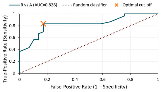 Figure 4. ROC curve—amplitude for R vs. A comparison.
