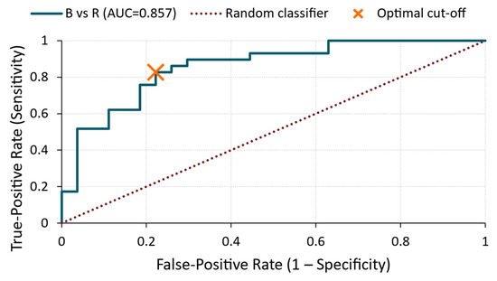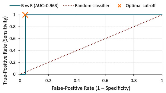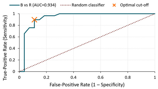 Figure 5. ROC curve—amplitude for B vs. R comparison.