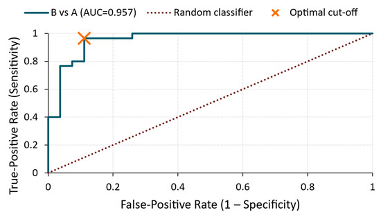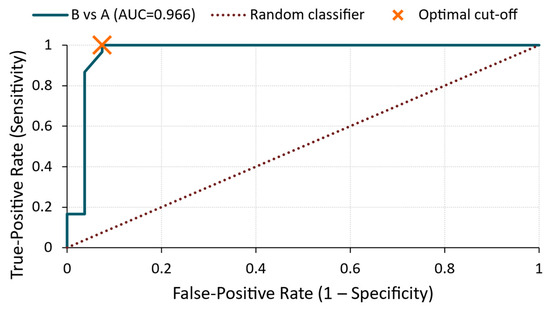Figure 6. ROC curve—amplitude for B vs. A comparison.