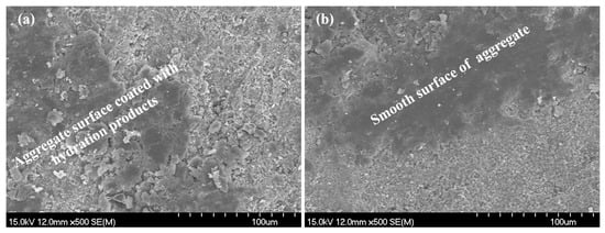 SEM detection for aggregate surface: (a) before leaching; (b) after leaching.