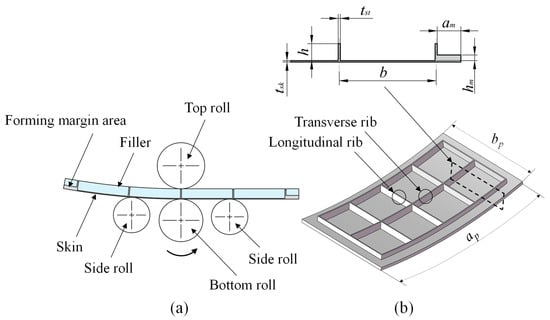 - Yin, P.; Jin, K.; Zhu, S.Q.; Wang, Y.Q.; Zhen, L.; Zhang, G.W.; Tang, Y.; Sun, C. Research on roll bending process of grid panel by CNC milling. Forg. Stamp. Technol. 2018, 43, 19–23. [Google Scholar] [CrossRef]