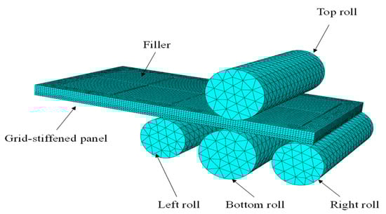 - Li, Y.Q.; Liu, J.S.; Liu, T.; Wang, Y.; Du, T.L.; Song, H.W.; Zhang, S.H. Finite element simulation on discrete filling rolling for integral panel skins. Forg. Stamp. Technol. 2020, 45, 106–112. [Google Scholar]