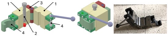 In the classic closed die, the material usually had to be extracted using the punch, which affected measurement accuracy due to prolonged extraction time and the resulting temperature change of the tested object. To solve this, a special opening die was constructed to eliminate this issue. An additional advantage of this solution is the shorter time required to extract the briquette, improving the accuracy of the temperature measurements. The construction of the new opening die is shown in Figure 1.