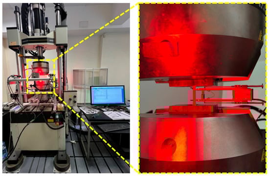 The Instron 8802 universal testing machine during a tensile test conducted with the use of the DIC system.