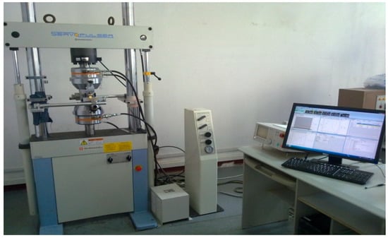 The test equipment of this study is the low frequency fatigue testing machine in Shimadzu. The low frequency fatigue testing machine adopts a control system with an electro-hydraulic servo, which can realize the test under constant amplitude loading and variable amplitude loading. The equipment parameters are as follows: the measurement range is ±100 kN, the dynamic error is <±3%, and the static error is <±0.5%. The test equipment is shown in Figure 5. In order to read the crack at the stable crack propagation stage and analyze the crack propagation increment, a JXD-B mobile microscope (Changchun Changcheng Education Instrument Co., Ltd., Changchun, China) with 20 times magnification is adopted, with a measurement accuracy of 0.01 mm. The measurement accuracy here has little effect on the results.