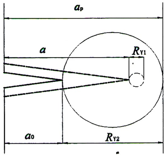 where m is the crack hysteresis index, RY2 is the plastic zone generated by tensile overload, and RY1 is the plastic zone generated by reference loading. According to the Irwin model, for the metal materials, the maximum plastic zone size at the crack tip is as follows [26]: